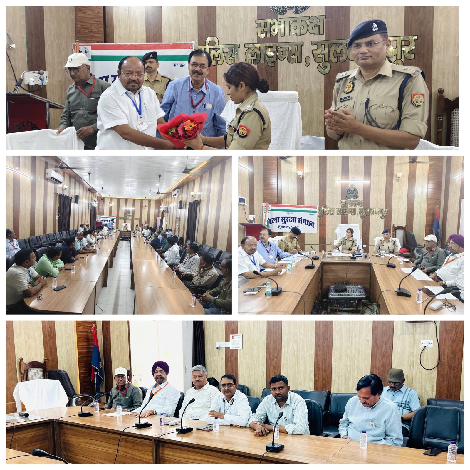 जिला सुरक्षा संगठन की बैठक का शुभारंभ राष्ट्रगान के साथ हुआ। संगठन के अध्यक्ष डॉ. राजीव श्रीवास्तव एवं महासचिव हाजी मोहम्मद इलियास खान ने पुलिस अधीक्षक को गुलदस्ता देकर स्वागत किया। इंजीनियर अजीत कुमार ने मैप के माध्यम से ट्रैफिक कंट्रोल की रूपरेखा प्रस्तुत की। वरिष्ठ साहित्यकार एवं संरक्षक कमल नयन पाण्डेय तथा मुख्य संयोजक सरदार बलदेव सिंह ने संगठन की गतिविधियों पर विस्तार से जानकारी दी। वहीं संयोजक आशीष अग्रवाल ने शहर की यातायात व्यवस्था में सुधार के सुझाव रखते हुए समन्वित प्रयासों पर जोर दिया।