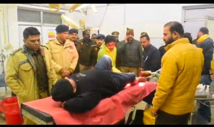 सुलतानपुर। थाना चांदा क्षेत्र में 06 दिसंबर 2025 को हुए अमन यादव की मारपीट, अपहरण व हत्या प्रकरण में पुलिस ने कार्रवाई तेज कर दी है। घटना में पहले ही दो अभियुक्तों को जेल भेजा जा चुका है। सोमवार को फरार आरोपियों की तलाश के दौरान पुलिस को सूचना मिली कि मामले में संलिप्त दो अपराधी भागने की फिराक में हैं। पुलिस टीम द्वारा घेराबंदी की गई तो आरोपियों ने खुद को बचाने के प्रयास में पुलिस पार्टी पर फायरिंग कर दी। जवाबी कार्रवाई में एक बदमाश के पैर में गोली लग गई, जिसकी पहचान दीपक यादव उर्फ राका के रूप में हुई है। घायल आरोपी का उपचार पुलिस निगरानी में कराया जा रहा है।