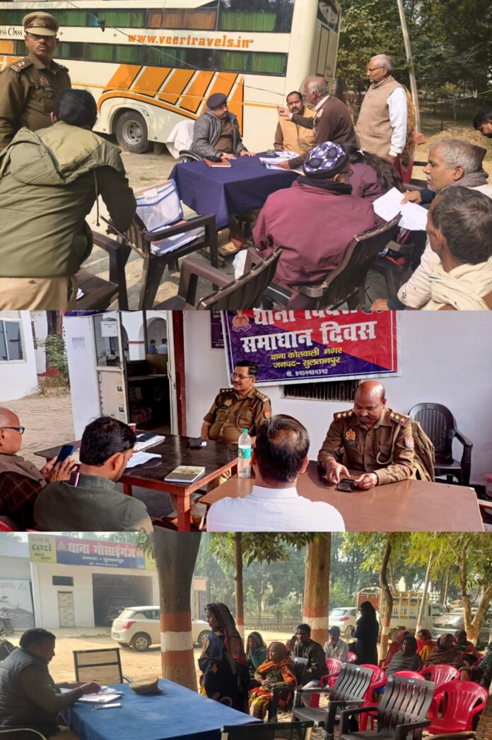सुल्तानपुर। जिले के विभिन्न थानों में शनिवार को आयोजित थाना समाधान दिवस में बड़ी संख्या में फरियादी अपनी समस्याएं लेकर पहुंचे। कोतवाली देहात, गोसाईगंज और कोतवाली नगर थाना परिसरों में हुए कार्यक्रमों में पुलिस अधिकारियों ने आमजन की शिकायतें सुनीं और संबंधित मामलों के शीघ्र निस्तारण के निर्देश दिए। समाधान दिवस में सबसे अधिक मामले भूमि और राजस्व विवाद से जुड़े सामने आए, जिससे स्पष्ट हुआ कि जमीनी विवाद आज भी लोगों की प्रमुख समस्या बने हुए हैं।