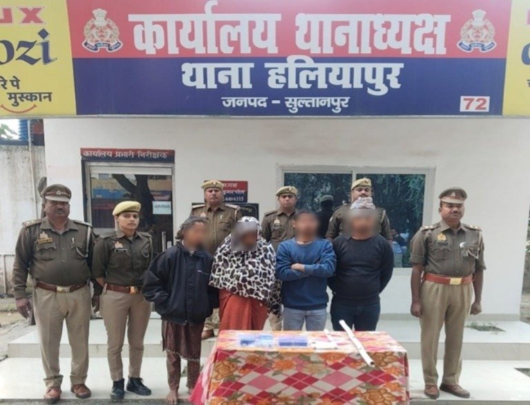 सुल्तानपुर। हलियापुर थाना क्षेत्र में पुलिस टीम पर हमले और उपनिरीक्षक की सरकारी पिस्टल लूटने की घटना में पुलिस को बड़ी सफलता मिली है। पुलिस ने शनिवार को ग्राम डोभियारा से चार वांछित अभियुक्तों को दबोच लिया। गिरफ्तारी अभियान पुलिस अधीक्षक सुल्तानपुर के निर्देशन, अपर पुलिस अधीक्षक के मार्गदर्शन तथा क्षेत्राधिकारी बल्दीराय के नेतृत्व में चलाया गया। थानाध्यक्ष तरुण कुमार पटेल ने टीम के साथ मिलकर आरोपियों को गिरफ्तार किया।